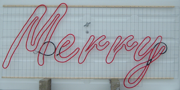 While browsing the internet for ideas for the light show I came across instructions on how to make an animated Merry Christmas sign using rope light. I liked the idea but there were some elements in the original that I needed to change.