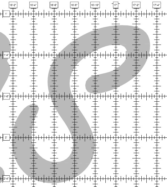 In order to form the ropelight into the letters onto the fence I needed a way to 'transfer' the layout of the letters to the fence. The original plan used a projector to shine the image onto the fence but I did not have access to a projector. The method I used was to draw the fence grid in AutoCad LT 2005 and then used the text tool to place the text over the grid. This would allow me to print each letter individually to see exactly where on the fence to place the letters. With the addition of division marks on the drawing I was able to get within 1/4" accuracy. The following are some screen shots from the AutoCad drawing.